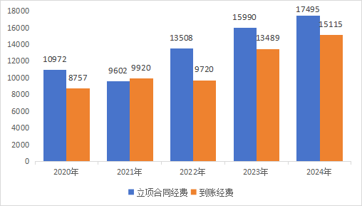 2020年-2024年立项合同经费、到账经费情况
