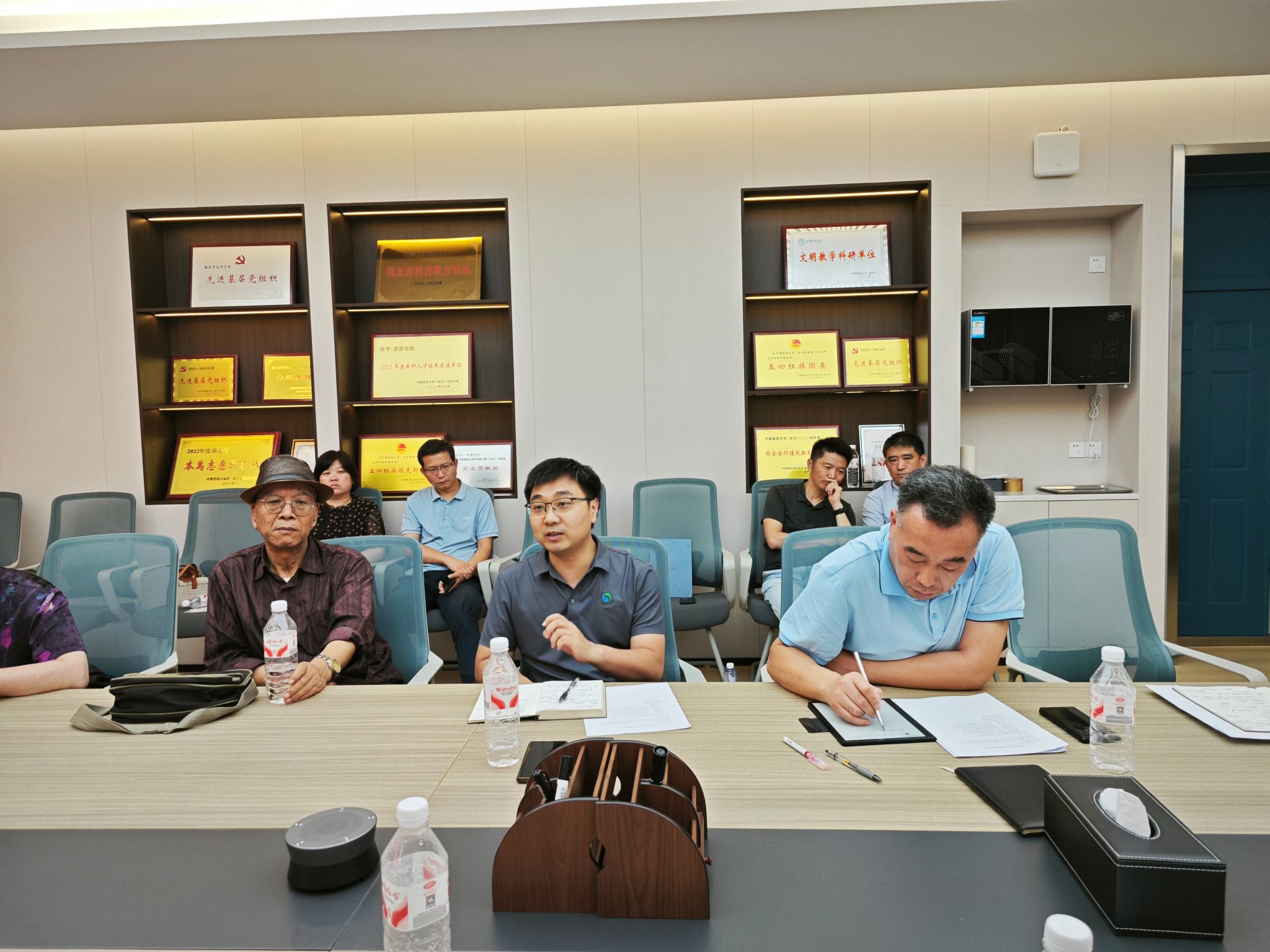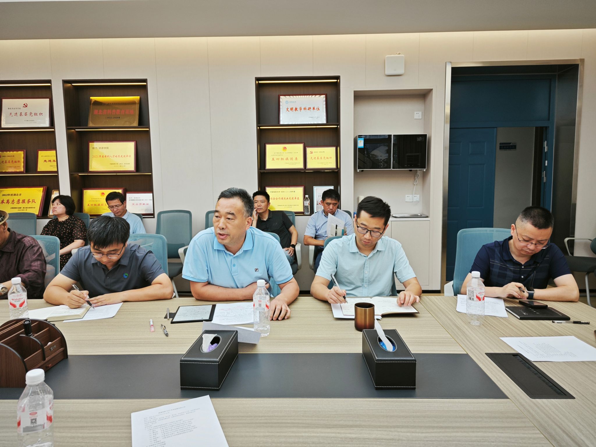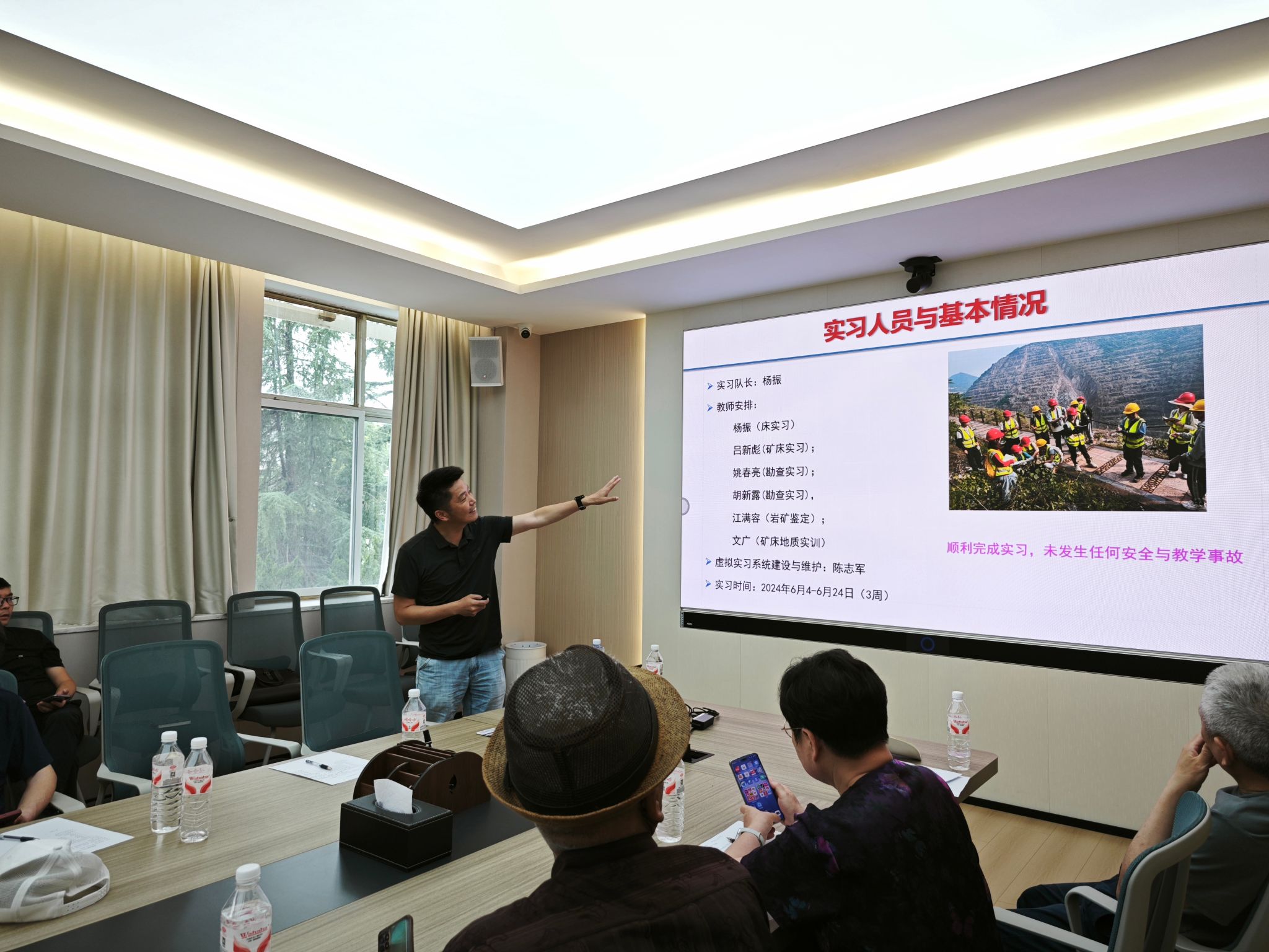董田、魏启荣、李嘉光、顾军、陈振林和杨振分别汇报了北戴河、周口店、秭归、江汉油田、咸宁通山和大冶实习基地2024年度实践教学性吧情况