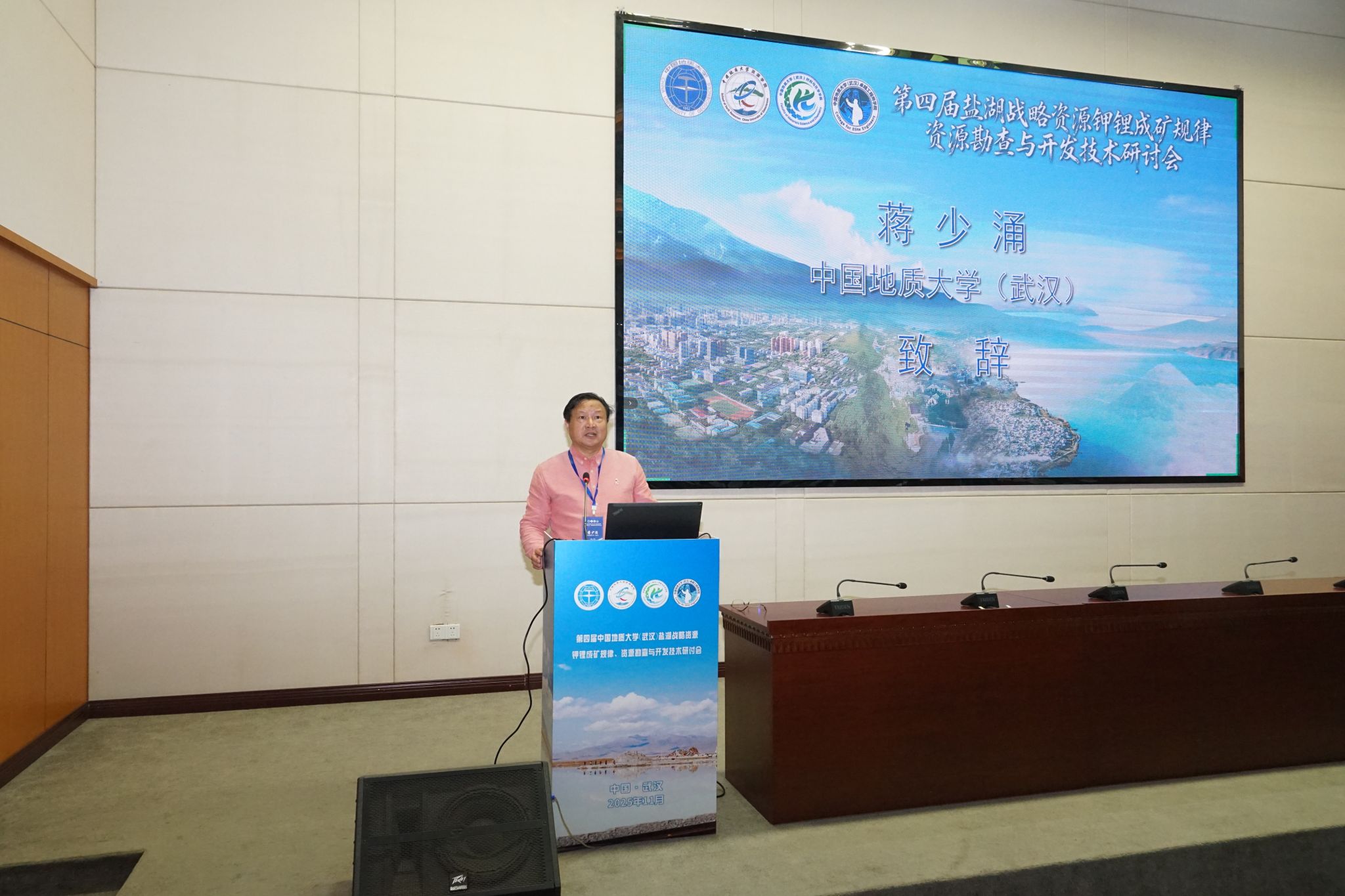 (武汉)校长助理蒋少涌教授在开幕致辞。他指出,在当前复杂严峻的国际形势下,关键矿产资源的稳定供应已成为关乎国家经济安全、国防安全以及科技竞争地位的核心议题。钾盐作为“粮食的粮食”,锂作为“新能源革命的维生素”,其供应链韧性至关重要。他强调,本次会议的召开是应对现实挑战、服务国家战略的及时之举。中国无机盐工业协会钾盐分会会长陈国福先生从行业视角出发,分析了盐湖钾锂产业的发展现状、服务国家战略需求与未来方向。新疆维吾尔自治区人民政府305项目办公室副主任朱炳玉先生分享了新疆地区盐湖资源的勘查进展与开发规划,为区域资源合作提供了重要思路。大会总召集人、性吧