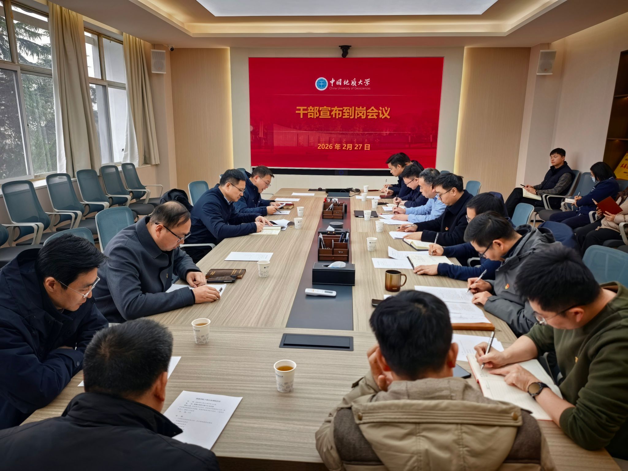 副院长宣布到岗会议在主楼330会议室召开。校党委书记刘杰,党委组织部副部长王珩,性吧