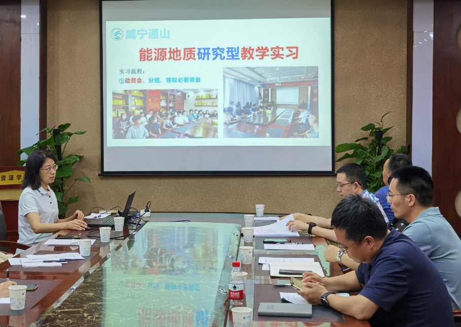 董田、魏启荣、李嘉光、顾军、王芙蓉和杨振分别汇报北戴河、周口店、秭归、江汉油田、咸宁通山和大冶实习基地2022年度实践教学性吧情况