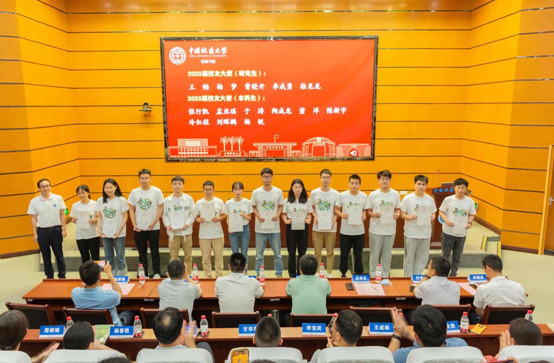 副院长赵葵东宣读聘任2023届毕业生校友大使决定并为校友大使颁发聘书。他希望被聘任的校友大使即日起履行工作职责,弘扬地大精神,传播母校信息,联络校友感情,参加当地校友会建设,为校友工作做出积极贡献。
