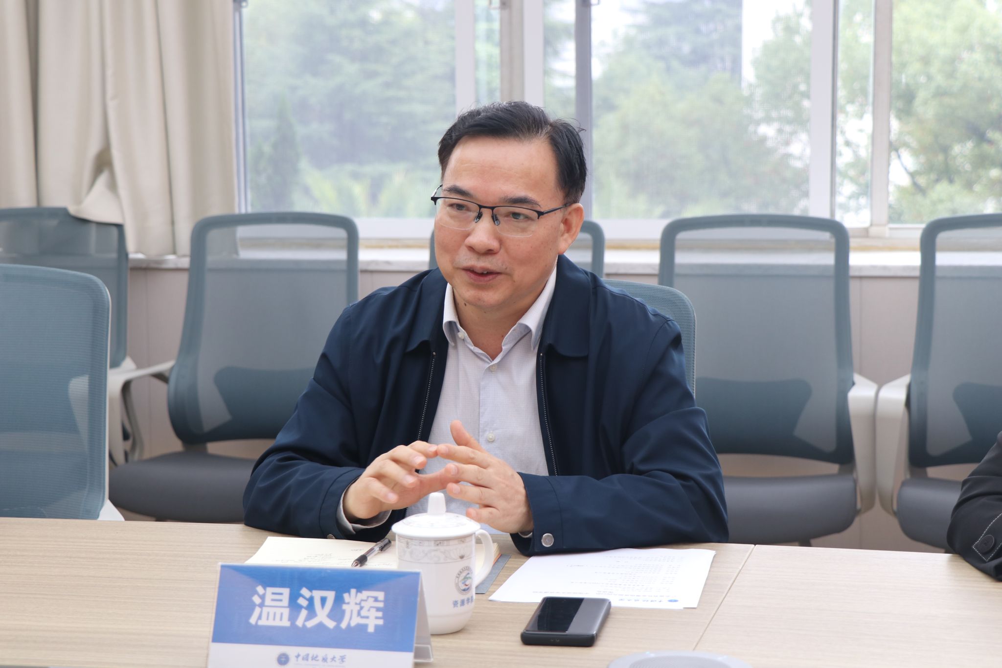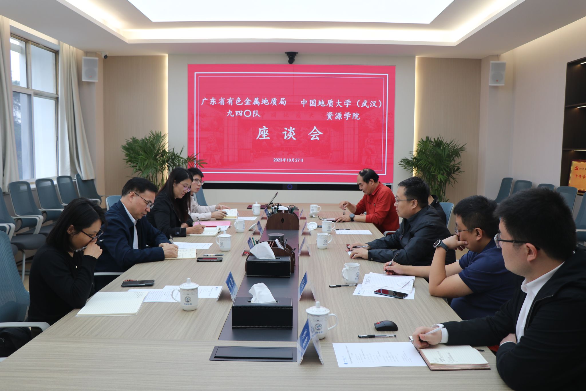 (通讯员 彭鑫 摄影 丁慧婷)近日,广东省有色金属地质局九四〇队党委书记、队长温汉辉一行到学院调研。学院党委书记高复阳、副院长沈传波、资源科学与工程系党支部书记付乐兵、资源信息工程系主任陈建国和学生工作组辅导员彭鑫参加座谈。高复阳主持会议。