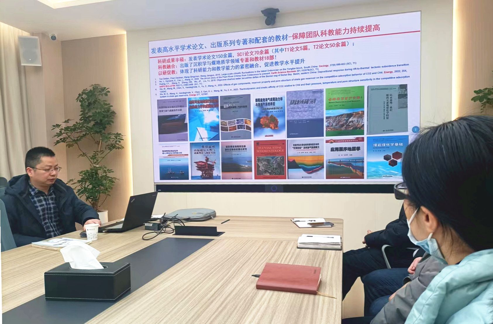 盆地矿产系全体教师在主楼330会议室围绕“《煤地质学》国家一流本科课程申报”举行教学研讨活动。甘华军主任主持会议,学校教学督导马立祥教授参会指导。