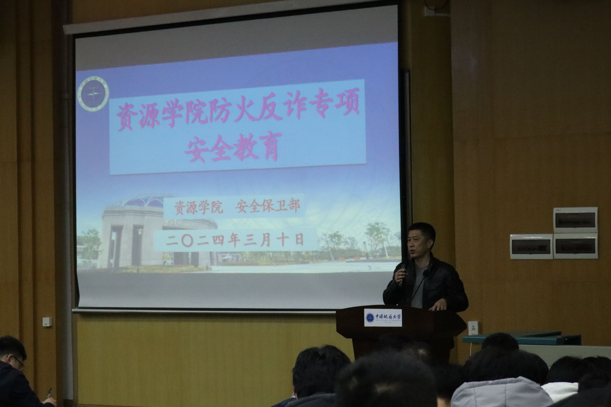 为增强学生安全意识,学院开展2024年春季学期安全教育专题活动。学院年级大会邀请安全保卫部治安科彭红进、魏景明两位老师,结合典型校园火灾、诈骗案例,向同学们阐述了掌握防火防骗知识的必要性。