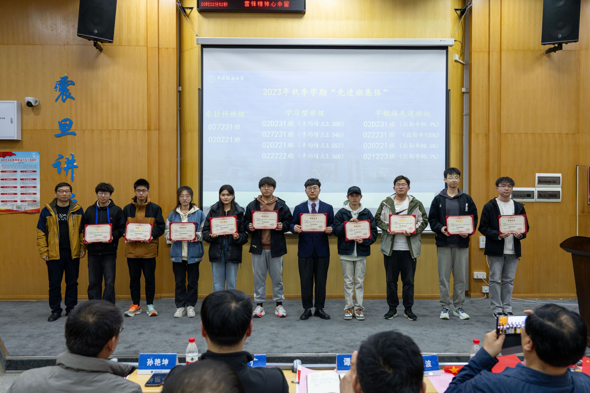 仪式上,学院党委副书记谭文伦为零挂科班级、学习型班级、早锻炼先进班级颁发“先进班集体”荣誉证书。