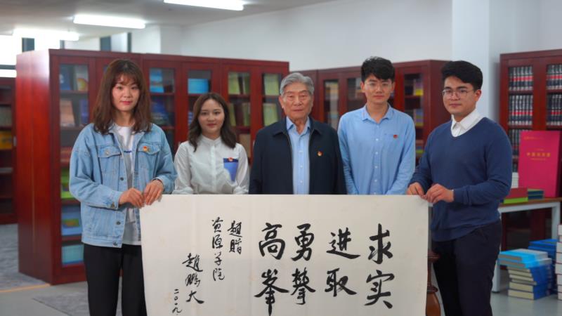 2019年五四青年节前夕,我院学子有幸采访赵鹏大院士,采访毕,邀请赵院士为性吧 题词。赵院士即兴挥毫“求实进取 勇攀高峰”。