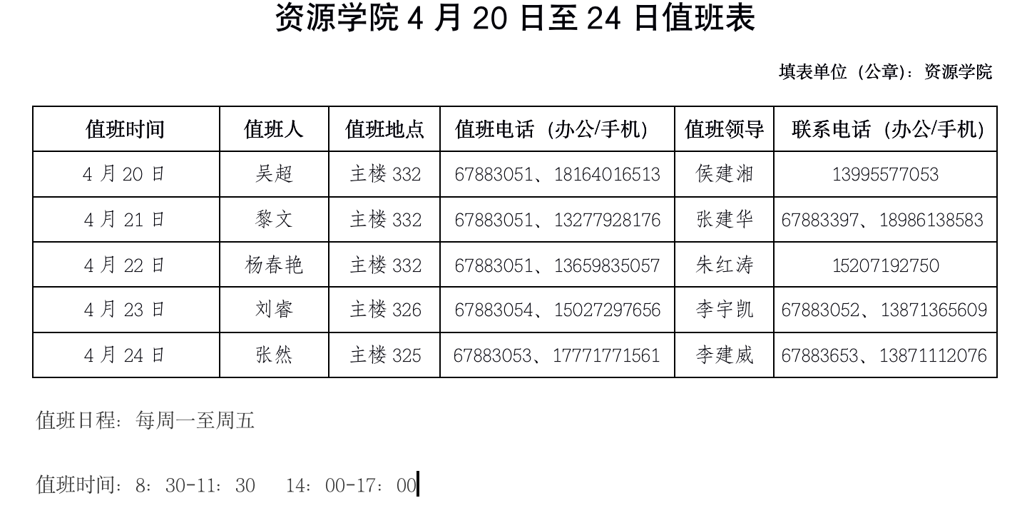性吧 4月20日至24日值班表.doc