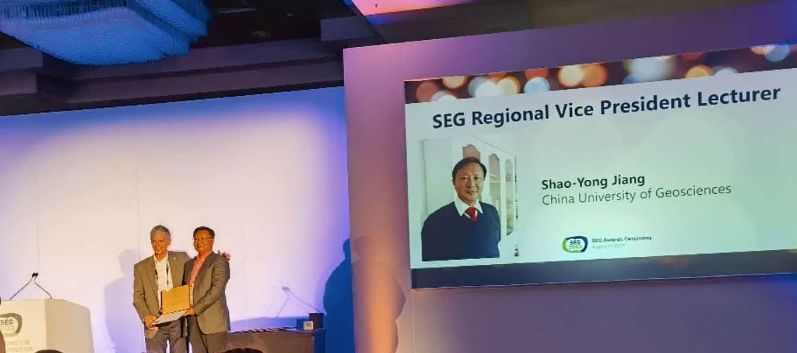 蒋少涌教授荣获“国际经济地质学家协会区域副主席讲习奖”(SEGRegional Vice President Lecturer),以表彰他在战略性关键金属矿产资源领域所作出的突出成就,是本次颁奖典礼获奖的唯一华人科学家。