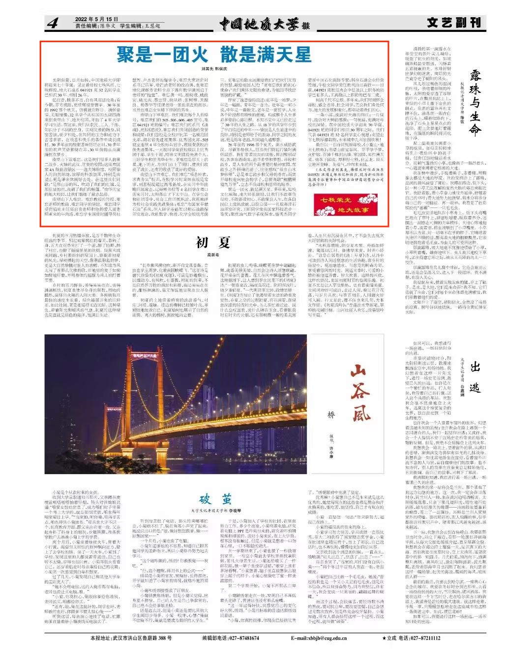 最后以一首诗词祝福母校:《小重山·地大七秩咏》/南望山前宝谷风。莘莘学子梦,火炉熔。百锤千炼剑出锋。家国情,实作满天星。/桃李下蹊成。厚积经七秩,化云龙。顶天立地再登峰。英雄气,冲向未来城。